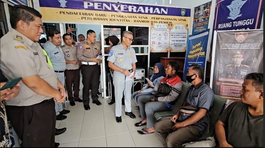 Palembang – Selasa (9/5) Kepala PT Jasa Raharja Cabang Sumsel bersama Tim Pembina Samsat Provinsi Sumsel melakukan kunjungan supervisi ke beberapa kantor samsat wilayah Sumatera Selatan. Pada kesempatan kali ini Kepala PT Jasa Raharja Cabang Sumsel Abdul Haris di dampingi Kabag Operasional M Erwin Setia Negara dan Kasubag SW & Humas Dodot Suhardo Utomo beserta Anggota Tim Pembina Samsat yang kali ini diwakili oleh Sekban Bapenda Prov Sumsel Marendra Oka Wijaya SE. M.Si, Kabid Pajak Wahyu Septiadi. SE.,MM, beserta Jajaran dan perwakilan dari Kepolisian Kasi STNK Kompol Dani Prasetya SIK beserta jajaran melakukan kunjungan supervisi ke samsat OKI II Tugumulyo dalam rangka monitoring program kerja dan capaian kinerja dalam optimalisasi penerimaan pajak dari sektor kendaraan bermotor wilayah OKI II. Sekaligus sosialiasi program Pemutihan Pajak Kendaraan Bermotor di wilayah Sumsel yang sudah berlangsung sejak 1 April 2023.