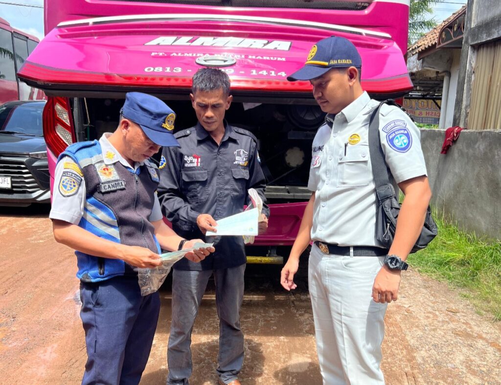 Belitang – Dalam rangka menyambut libur panjang yakni libur tahun baru Imlek 2025 dan Isra’ Mi’raj, Jasa Raharja Baturaja dalam hal ini diwakili oleh Penanggung Jawab Samsat OKU Timur II Ulung Purba lakukan giat Ramp check angkutan umum bersama mitra Dinas Perhubungan (Dishub) di PO Almira Putri Harum pada Jum’at, 24 Januari 2025.